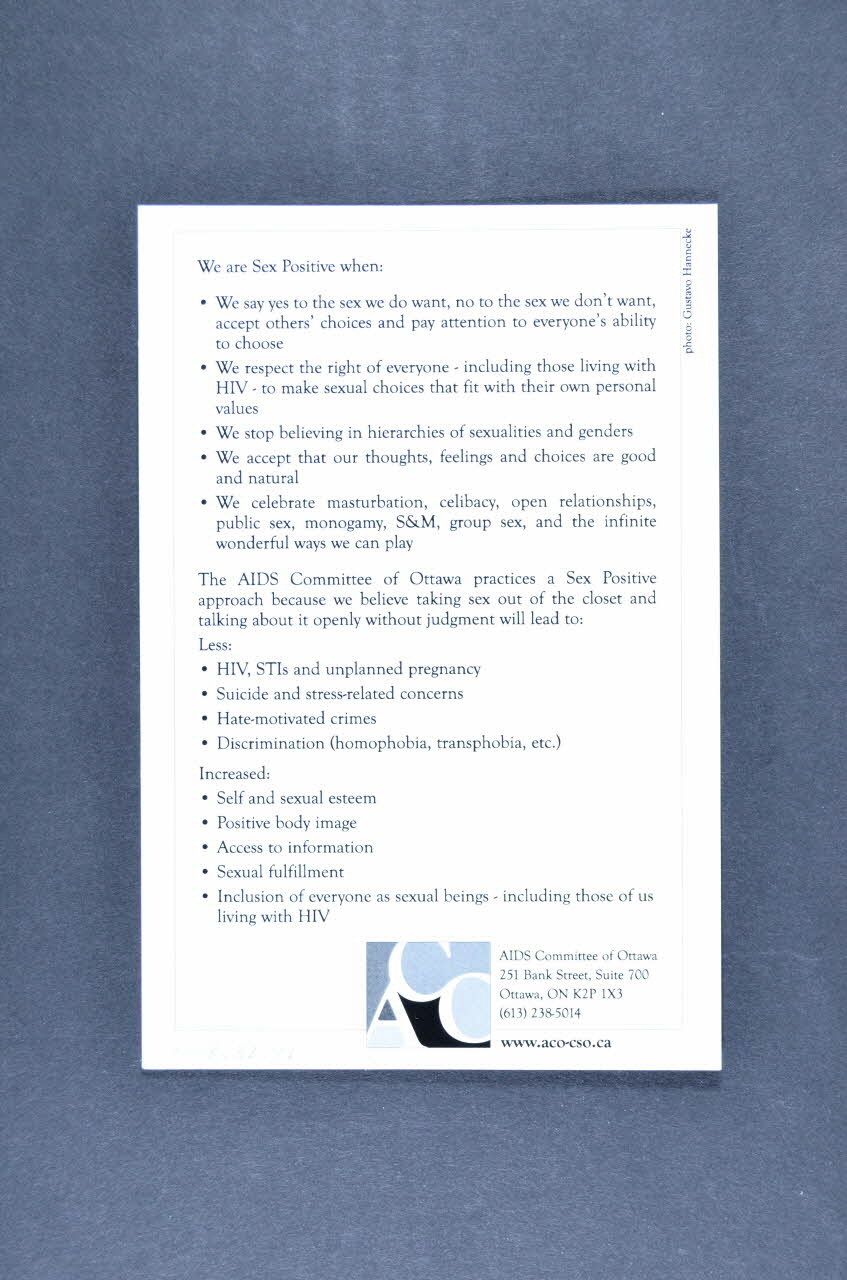 AIDS Committee of Ottawa // 251 Bank Street, Suite 700 // Ottawa, ON K2P 1X3, versoTexte