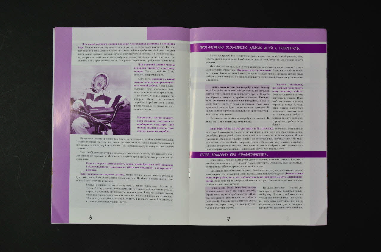 Il s'agit d'une brochure de quatorze pages en papier glacé imprimé. L'ensemble est relié par deux agrafes. Le contenu est en ukrainien.