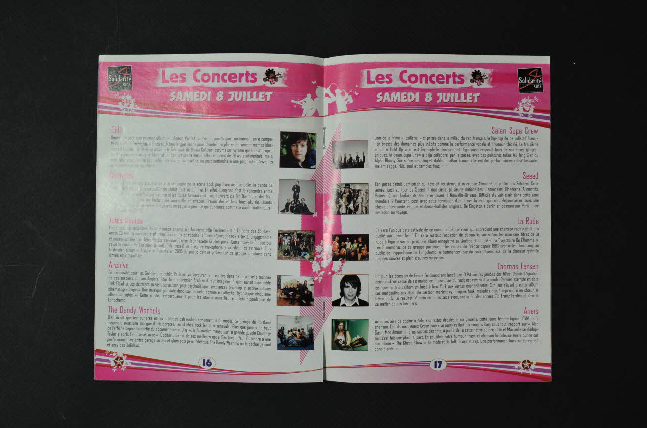 Solidays (inscription en jaune au centre de la couverture), sur la couvertureDate