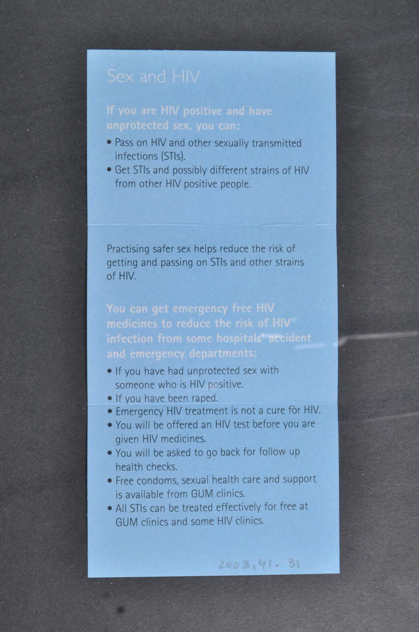 Dépliant, Dépliant "Sex and HIV" (Sexe et VIH)