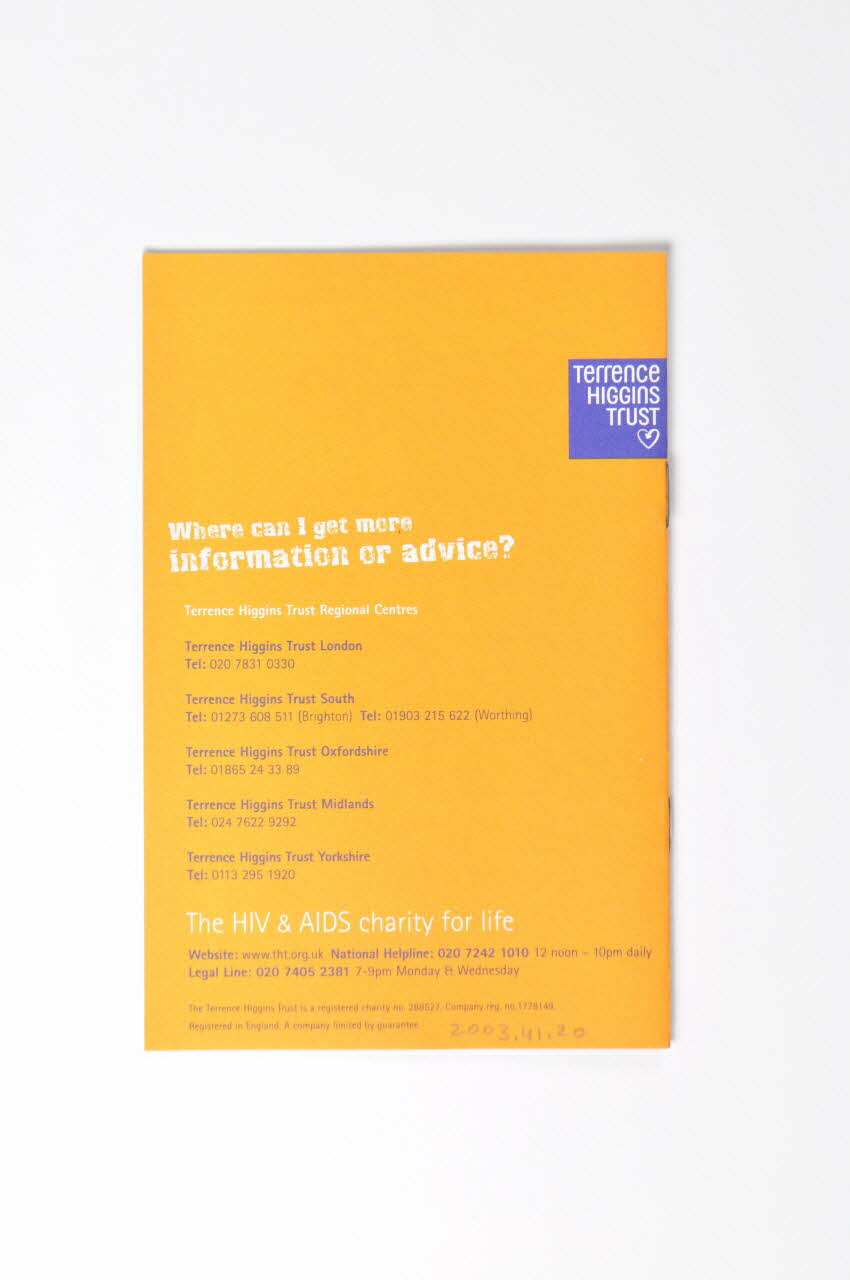 Terrence // Higgins // Trust (en haut à droite. // ce logo est également présent sur la couverture arrière), sur la couvertureSous-titre