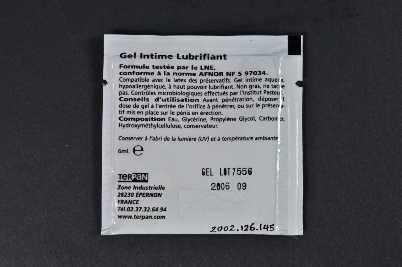Enveloppe de gel lubrifiant, "Plaisir, confort, sécurité"
