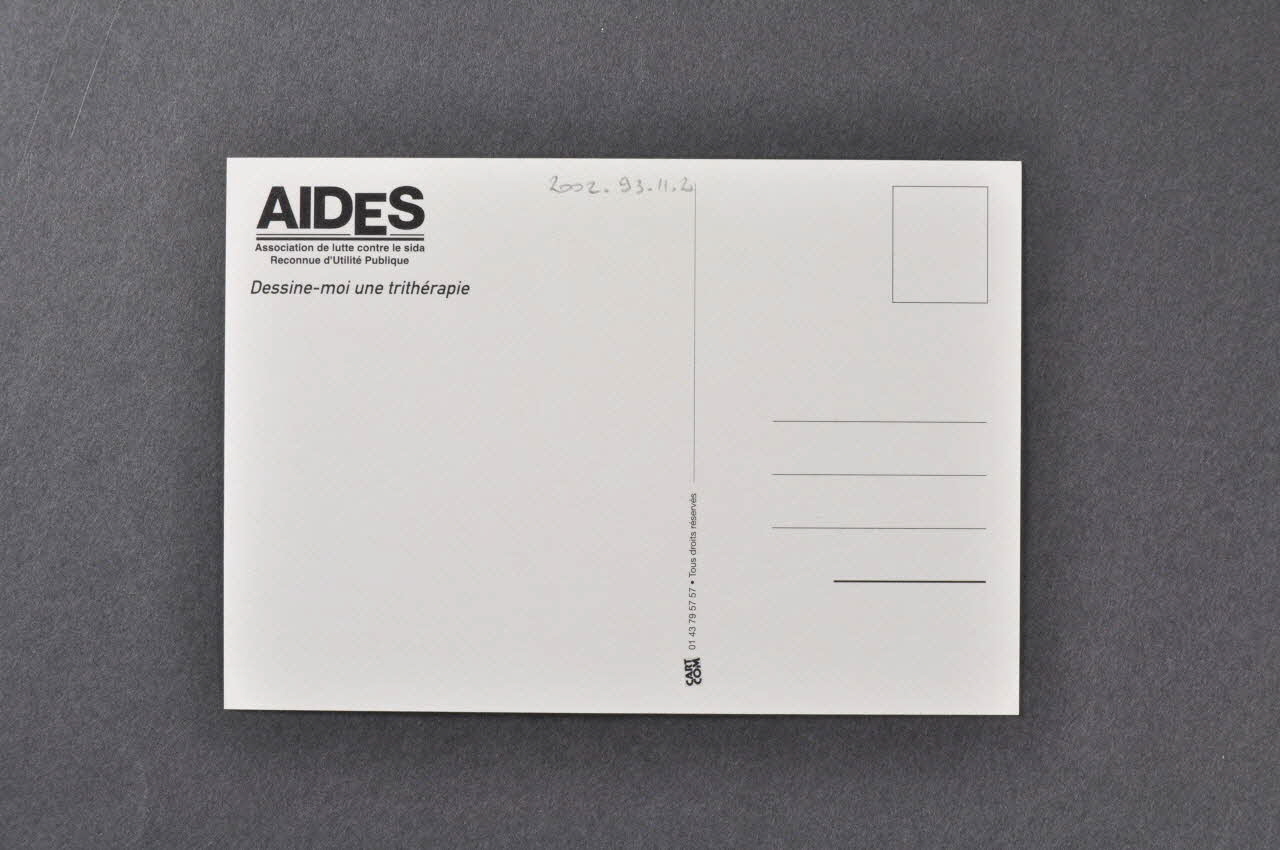 AIDES // Association de lutte contre le sida // Reconnue d'Utilité Publique // // Dessine-moi une trithérapie (angle supérieur gauche), versoSignature, auteur