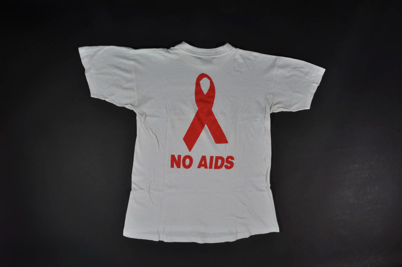 Tee shirt, "No AIDS" (blanc et ruban rouge rouge)