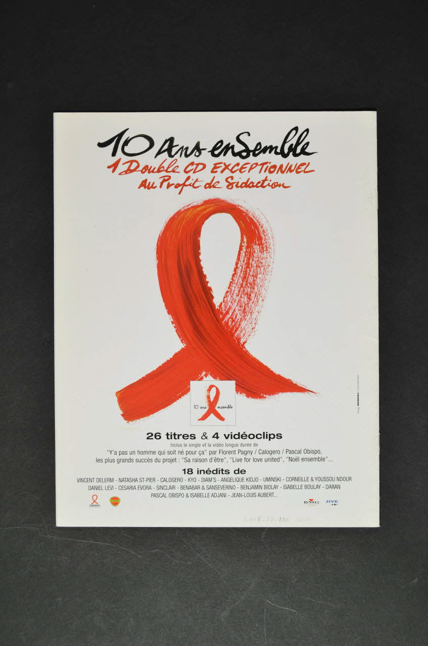 journal des acteurs de la lutte contre le sida (en blanc, dernier mot en rouge ; sous le nom de la revue), en hautInscription concernant le commanditaire