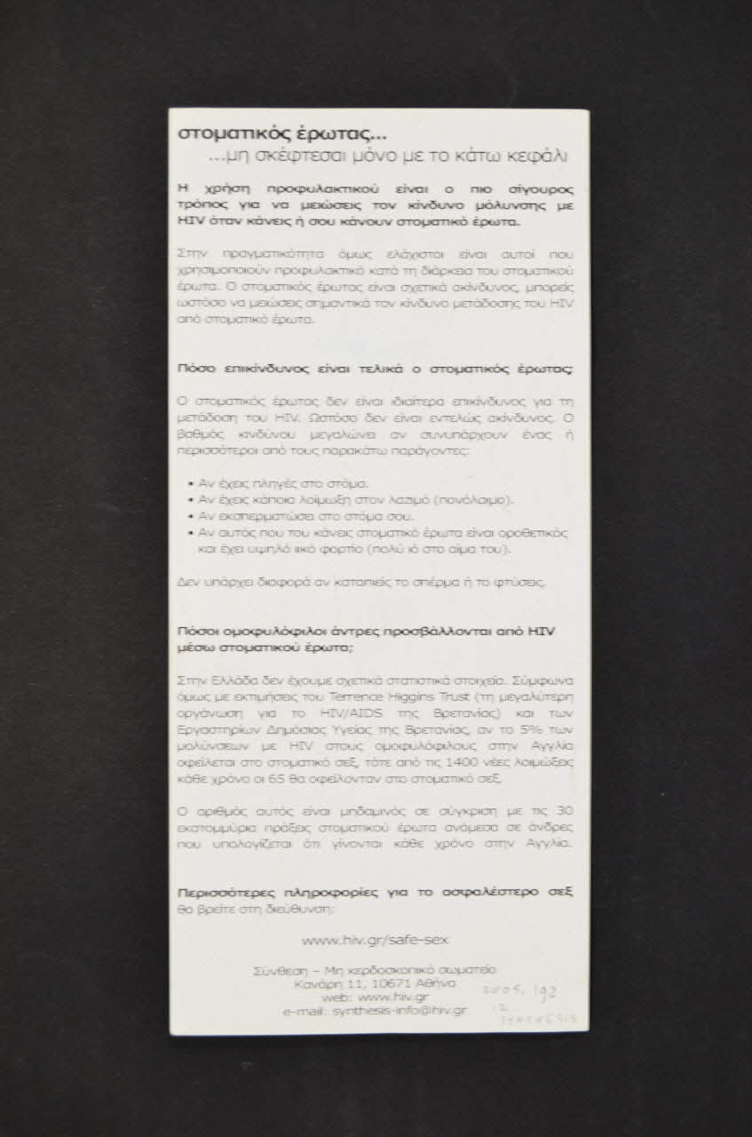 Ce flyer grec de format rectangulaire est de couleur vert.