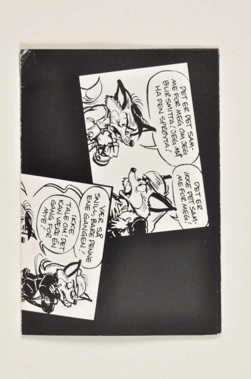 La couverture est illustré d'un dessin de bande dessinée représentant deux renards anthropomorphes. Dans la partie supérieur figurent des inscriptions en noir et en gris. L'intérieur comporte le même type de dessins avec les mêmes protagonistes.Décor