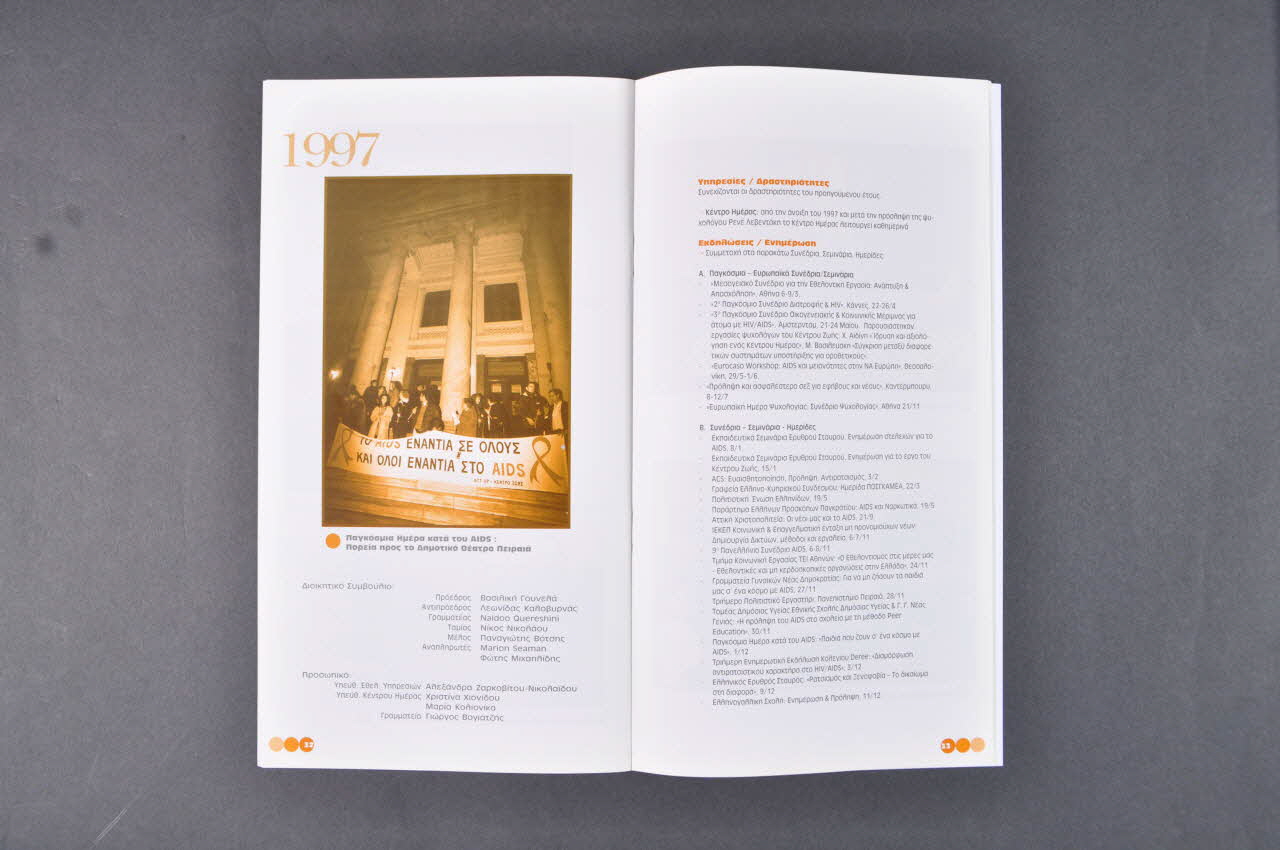 On peut voir des photos des locaux, des responsables, du bateau de prévention (1995, 1997, 1998), des bougies du souvenir (1996), des manifestations (1994, 1996, 1997)...