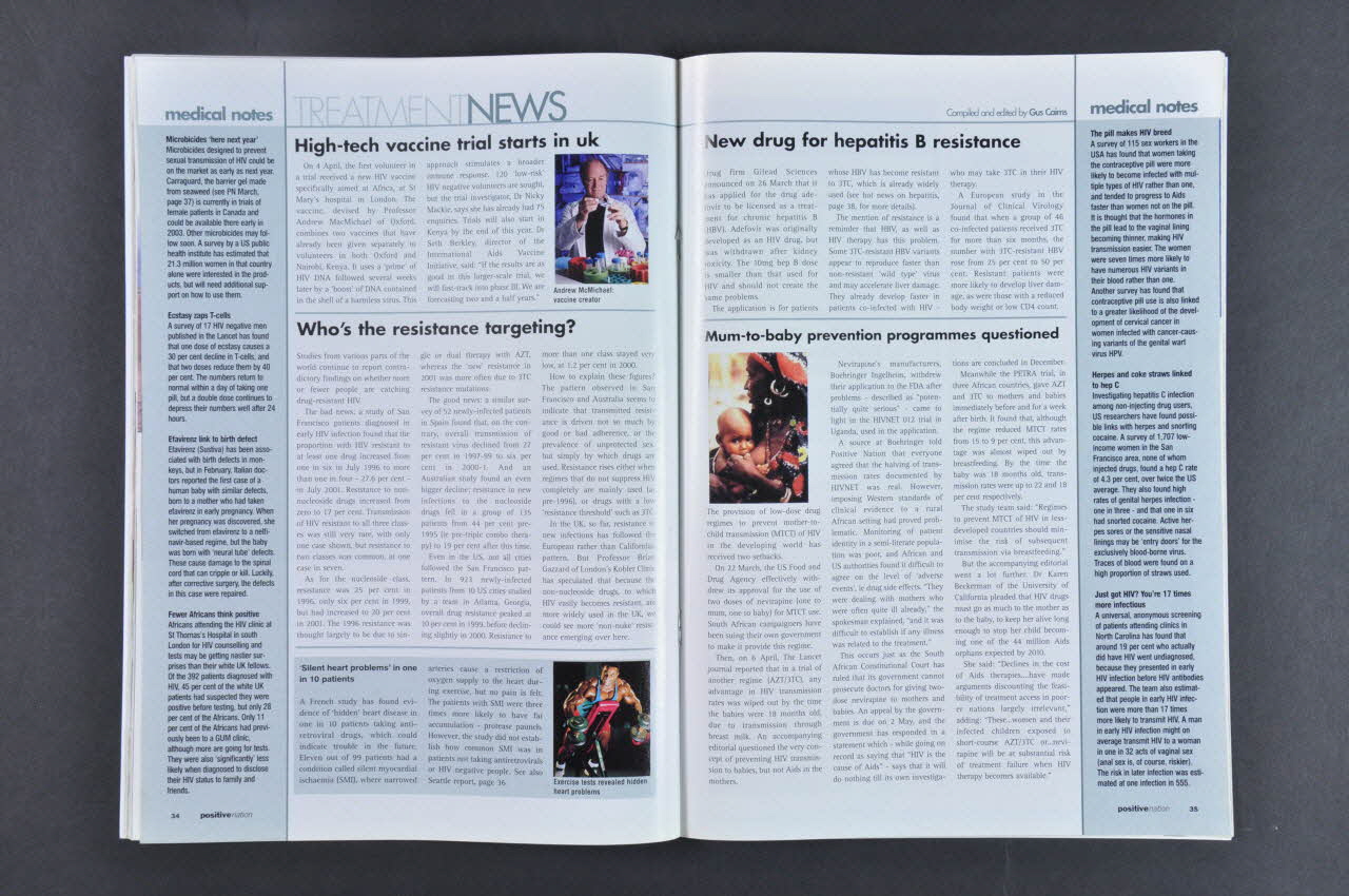 FEATURES // 14 the world's most powerful positive woman // 18 holidays can be fun // 22 impatient for change // 26 happy funerals // 30 at the sharp end of africa // // REGULARS // 04 letters // 05 subscribe now ! // 06 comment and cast list // 08 pamper yourself // 10 news // 12 world news // 44 q&a: travel jabs // 46 caroline guinness // 48 kay'e balogun // 50 xavier franquet // 52 speak up : dick splash // 54 arts pages // 56 gazette // 60 community ads // 62 directory // 63 small ads // 66 recipes // // TREATMENT // 34 treatment news // 38 lipodystrophy latest // 39 hot news on hepatitis // 40 rip-off britain // 42 the sweet smell of healing (Imprimé sur la page 3 et réparti en trois parties), à l'intérieurDécor