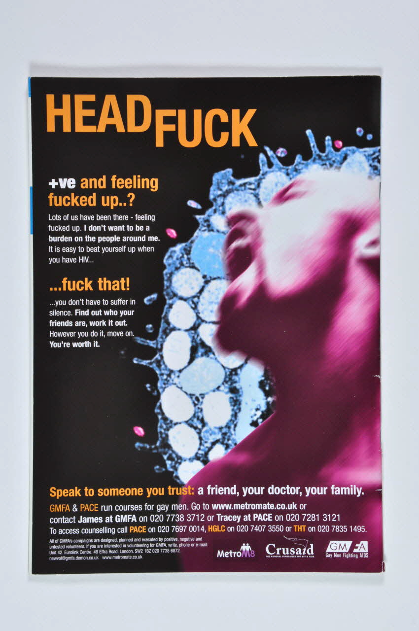 Précisions sur le contenu : - p. 14 Interview de Milly Katana, la seule personne séropositive au bureau du fonds mondial (titre de couverture) - p. 18 Conseils pour des vacances sans stress (grand titre de couverture) - p. 22 La nouvelle ethique du self help des personnes séropositives. - p. 26 Rituels funéraires (titre de couverture) - p. 30 Migrants venant de Somalie - p. 32 Etre gai, séropositif et juif orthodoxe - p. 35 Nouvelles des traitements (traitement mère enfant) - p. 36 La conférence de Seattle sur les retrovirus (lipodystrophie) - p. 39 Nouvelles sur l'hépatite - p. 40 Prix des traitements (coût plus élevé au Royaume Uni que dans les autres pays européens) - p. 42 Aromathérapie Lettres de lecteurs Chouchoutez vous (antimoustiques, safe kit pour le voyage...) - Témoignages p. 7 faite par Terrence Higgins Trust. Fond violet, silhouette bordeau avec lunettes levant les bras . Au dessus de sa tête 4 bulles , caractères blancs. Dans trois des bulles, fond bordeau, choix de distractions (boy friend, friens, pub etc...) Sur la dernière bulle, fond vert : traitement : "Nucleoside analogue + Nucleoside analogue + Protease Inhibitor. Au centre, en lettres vertes (en anglais) : Si vous êtes un homme gay séropositif vous devez parfois trouver difficile d'harmoniser votre traitement avec les autres combinaisons de votre vie. Terrence Higgins Trust peut vous aider à trouver des façons de bien vivre avec le VIH. Pas seulement les questions médicales mais aussi le reste de votre vie." (en bas, numéro de la Hot Line.) Dos de couverture: page éditée par Gay Men Fighting AIDS et Crusaid. Un personnage flou, coloré en rose, criant. En haut, en grandes capitales oranges : "Head Fuck" En dessous, titre en orange (sauf +ve en blanc), puist texte écrit en blanc en dessous (en anglais) : "Séropositif et vous sentant baisé...? Cela est arrivé à beaucoup d'entre nous, de se sentir baisé. Je ne veux pas être un poids pour mon entourage. C'est facile de vous donner à vous même des coups quand vous avez le VIH" En dessous, en orange : ... Foutez vous en ... et (en blanc) vous n'en avez pas à souffrir en silence. Trouvez qui sont vos amis, travaillez cela. Qui que vous fassiez, bougez. Vous en valez la peine. Et, en bas, en rose, puis blanc : "Parlez à quelqu'un en qui vous avez confiance : un ami, votre médecin, votre famille. Et en dessous, les coordonnées de Gay men Fighting AIDS