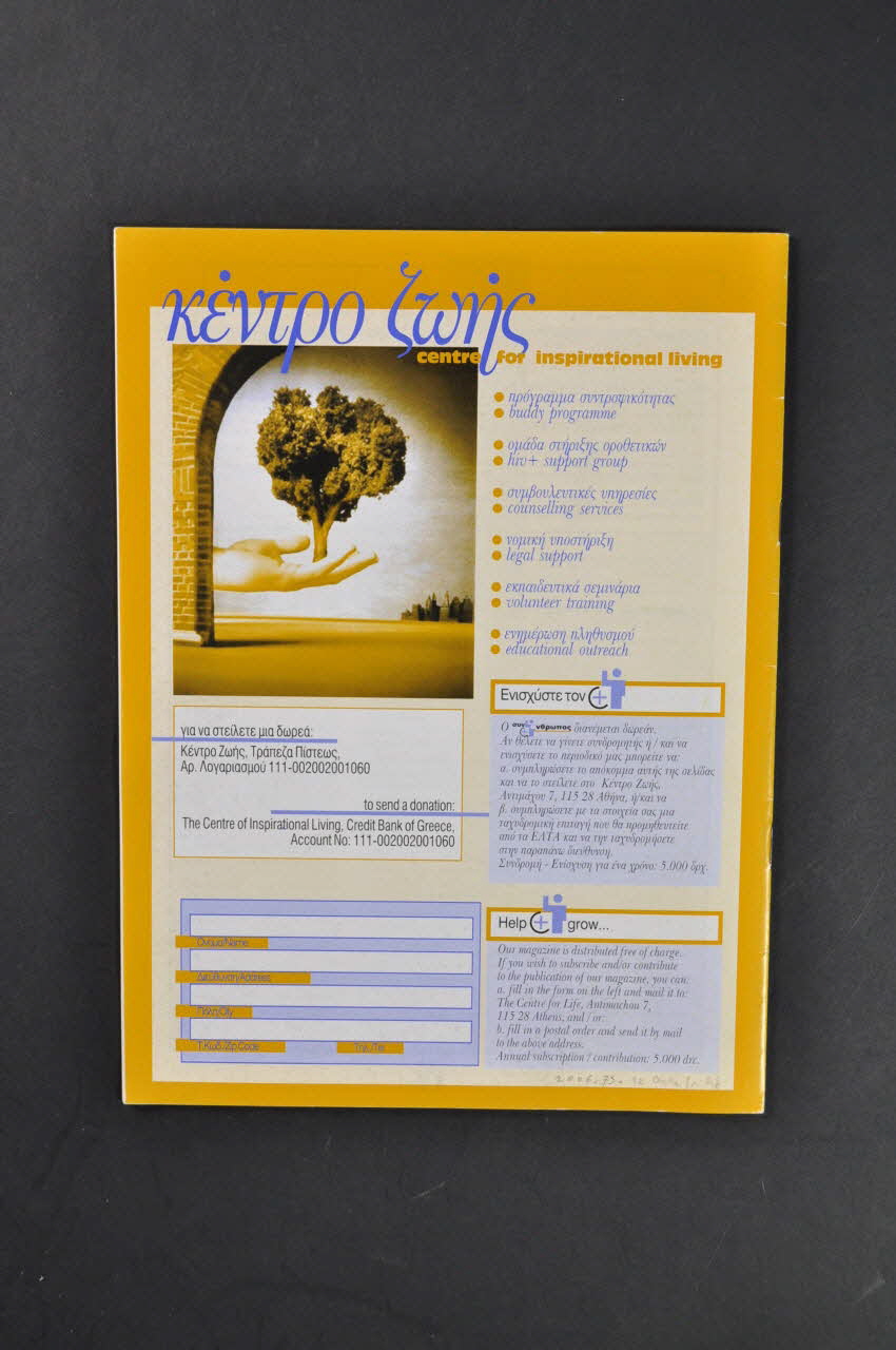 www.kentrozois.gr (adresse mail, en vertical sur la bande orange), rectoDate