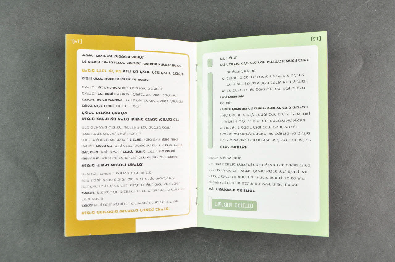 A l' intérieur de la brochure, les pages ont un fond blanc, avec des inscriptions en noir. Les titres et les encadrements sont de couleurs différentes selon les parties.
