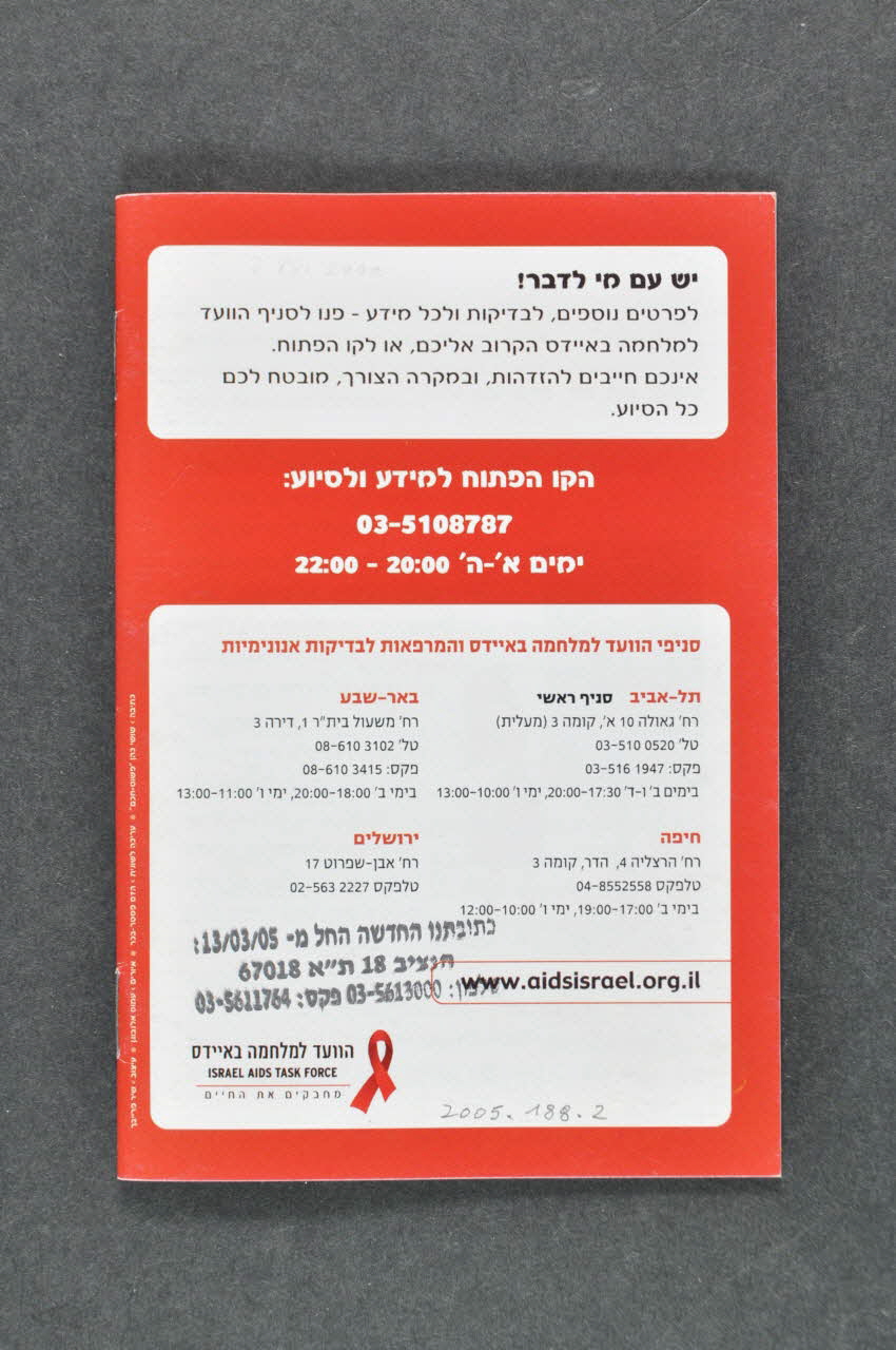 La brochure sur les préservatifs est illustrée de dessins humoristiques. Les inscriptions sont en hébreu et ne peuvent pas être transcrites.