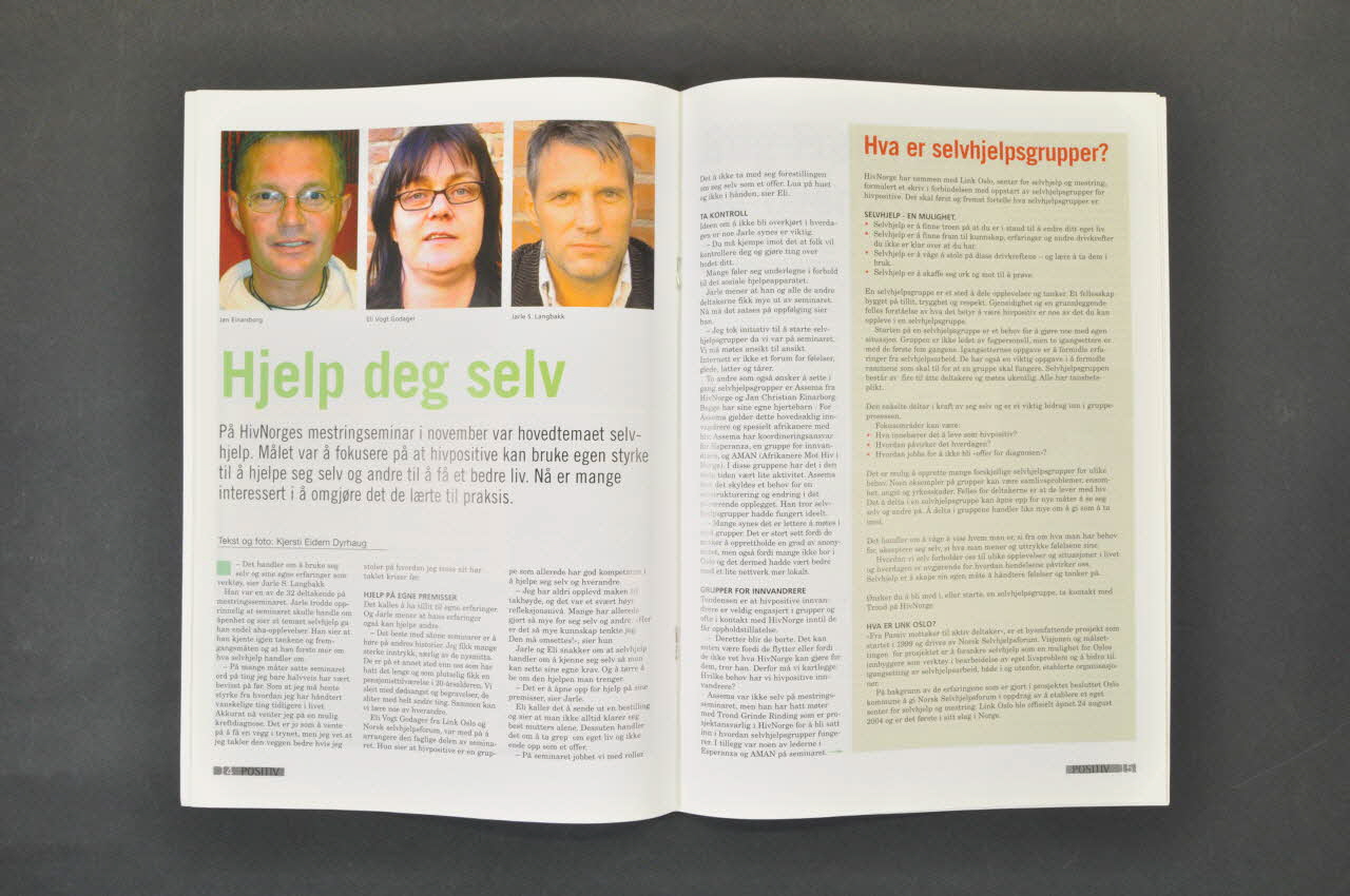 Sommaire (traduire les titres) - Encadré : "Skjult eller äpen?" - Commentaire : "Äpenhet" - Rubrique : Vivre avec le VIH : "Gemmas to liv". (Grossesse et séropositivité : photo de couverture) - "Tilbake i skapet" - "Äpenhet pä Verdens Aidsdag" - "Hvordan er det ä vaere...?" - (encadré) : "Seminar i Stavanger" - "HIV pä gata" - "Kunstnere stotter hivarbeid" (à l'occasion du 1er décembre, exposition d'artistes séropositifs, reproductions couleur) - "Verden mottes i Lisboa" (séminaire "AIDS & Mobility" à Lisbonne) - (encadrés) : Le réseau "AIDS & Mobility" / CdRom destinés à ceux qui travaillent avec les prostitués migrants - "Positivt om hivpositivitet" (séminaire de l'association Aksept) - Rubrique : "Hva har du rett til?" : "Godtgjorelse for infeksjons forebyggende behandling" - "Stotte til kjop av bolig" - Rubrique : "Spor akupunktoren" : "Gode räd fra kjokkensjefen" - "Hostfest for homser" - (encadrés) : Conférence internationale du sida à Toronto / "Middel mot sovende virus" - "Nettsted for hivpositive homser" - "Indisk patentlov rammer fattige hardt" - (encadré) : "Holdninger viktigere em medisiner" - "Infoguiden"