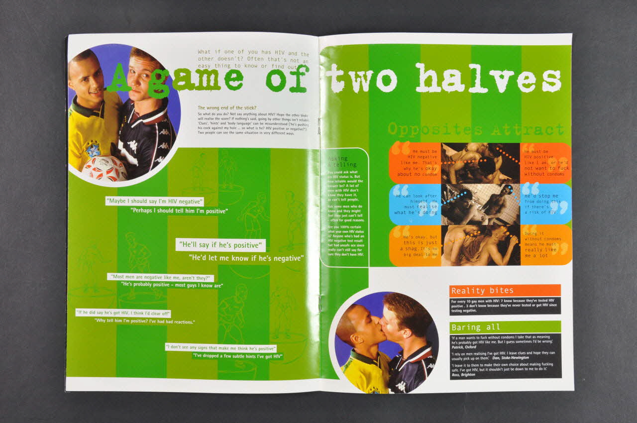 Published by Terrence Higgins // [...] // Grays Inn Road London WC1X 8JU (Imprimé en petits caractères blancs sur la troisième page de couverture, à droite dans le bas), à l'intérieurTexte