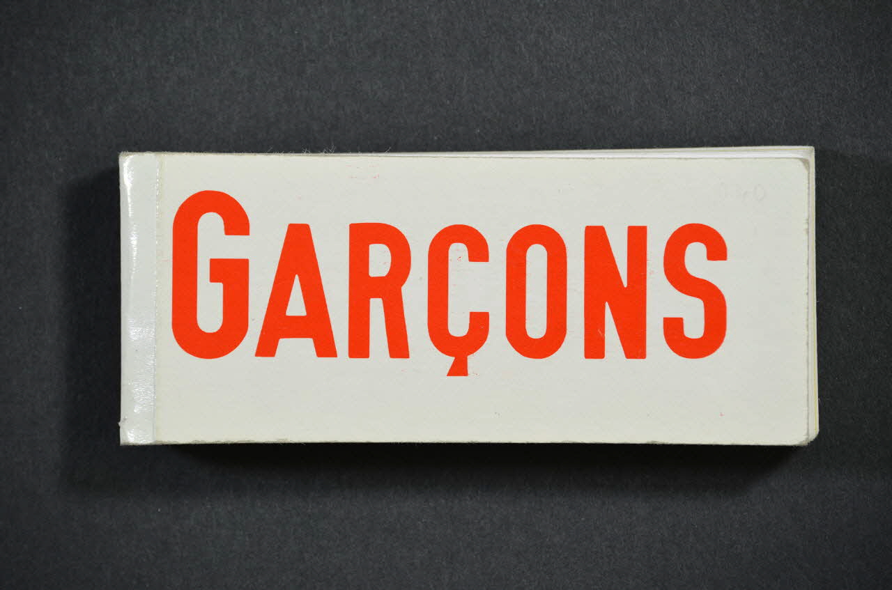 PARLEZ-MOI D'AMOUR (Sur le rabat du carnet.), sur la couvertureGARÇONS (En rouge sur fond blanc.), versoFILLES (En blanc sur fond rouge), rectoConcernant le lieu d'édition