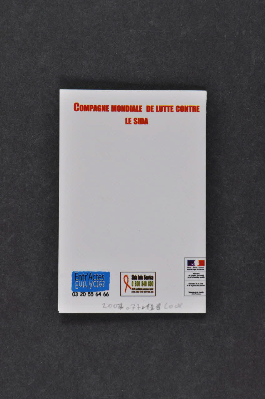 Campagne Mondiale de Lutte contre le sida, versoClients, / le port du / préservatif ne se / marchande pas !, sur la couvertureRapports non protégés..., sur la couvertureDécor
