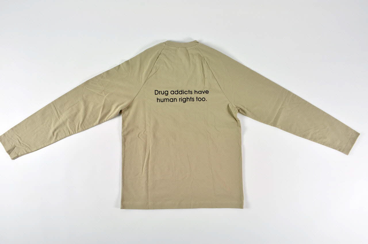 tee-shirt, "Drug addicts have human rights too" (Les usagers de drogue ont aussi des droits humains)