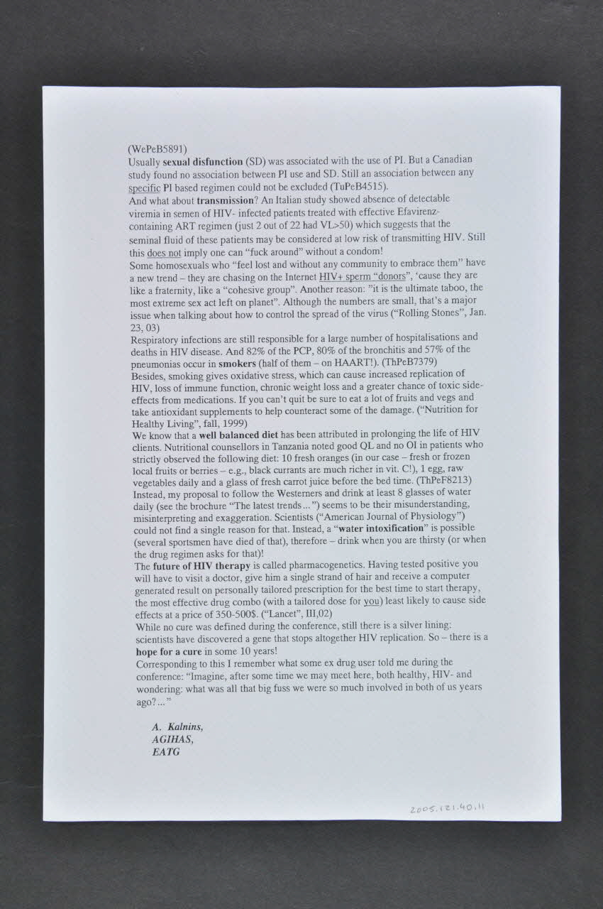 Fait partie d'une série de documents envoyés ensemble par l'association comme significatifs de son action. Dans une lettre d'accompagnement, le responsable de l'association s'excuse du retard mis à répondre à la demande de documentation et donne l'explication suivante : "Pour être honnête, au tout début, votre proposition m'a rendu très pessimiste. Je me demandais l'utilité de collecter tous ces matériaux. Maintenant, en y repensant, je suis arrivé à une conclusion différente : nous n'avons pas d'archives, et maintenant nos publications vont être gardées pour la postériorité au coeur de l'Europe ! Merci pour cette proposition merveilleuse et pour tous vos efforts."