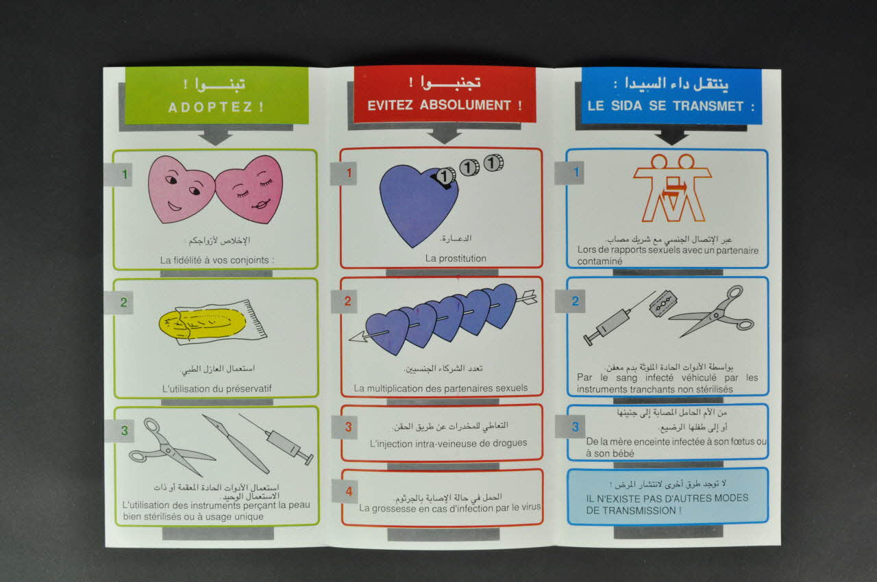 Dépliant, "Sida. Informez-vous ! Protégez-vous !" (en français et en arabe)