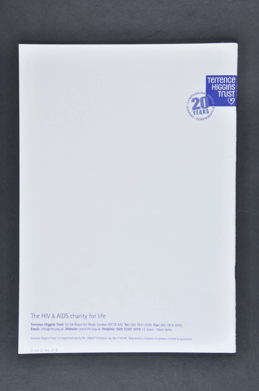 TERRENCE HIGGINS TRUST (sur la couverture en haut à droite)Décor