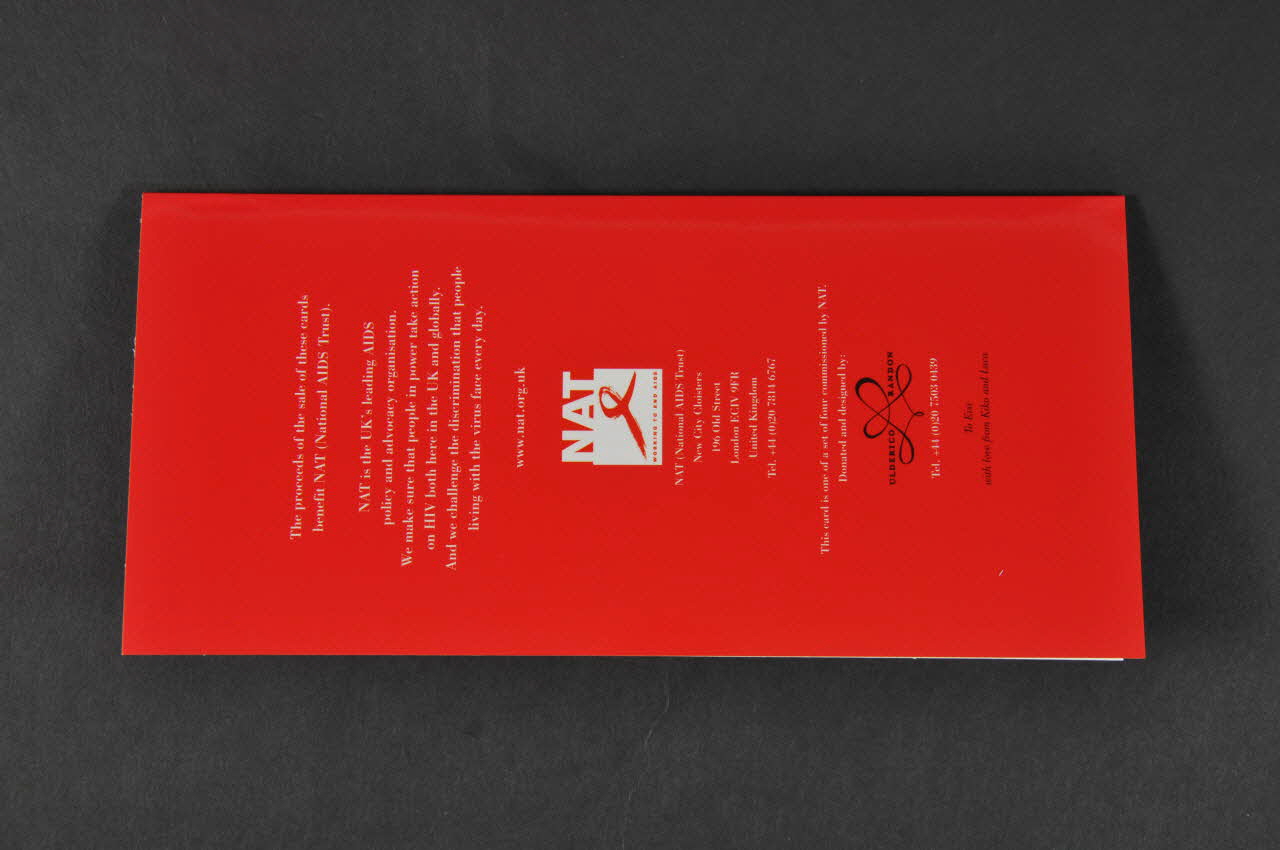 NAT (National AIDS Trust) // New City Cloisters // 196 Old Street // London ECIV 9FR // United kingdom (sous le logo), versoDécor