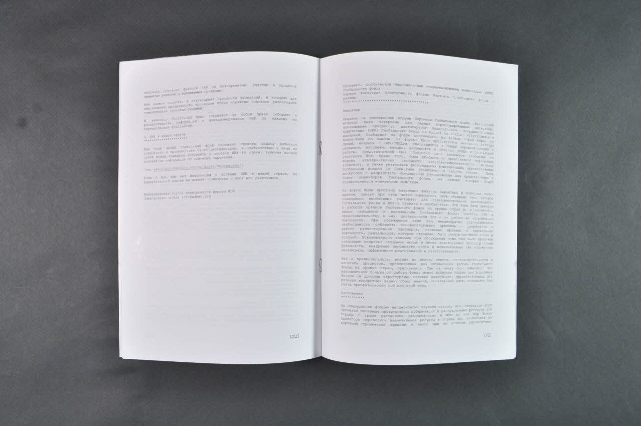 Il s'agit d'une revue au format A4, en russe, éditée pour un forum sur le sida.Ce document a été édité à l'identique mais en espagnol (2006.30.27), en thailandais (2006.30.28) et en anglais (2006.30.26).