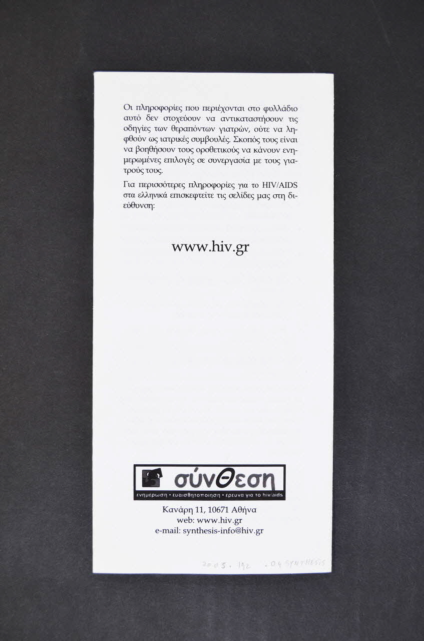 www.hiv.gr (Site internet inscrit au dos du dépliant, en noir), en hautDécor