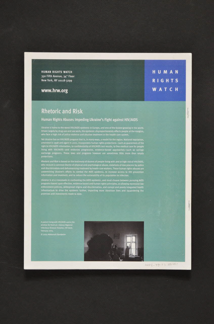 BROCHURE, "Rhetoric and Risk. Human right abuses impeding Ukraine's Fight against AIDS" ' (Réthorique et risque. Abus contre les droits de l'homme empêchant le combat contre le sida en Ukraine)