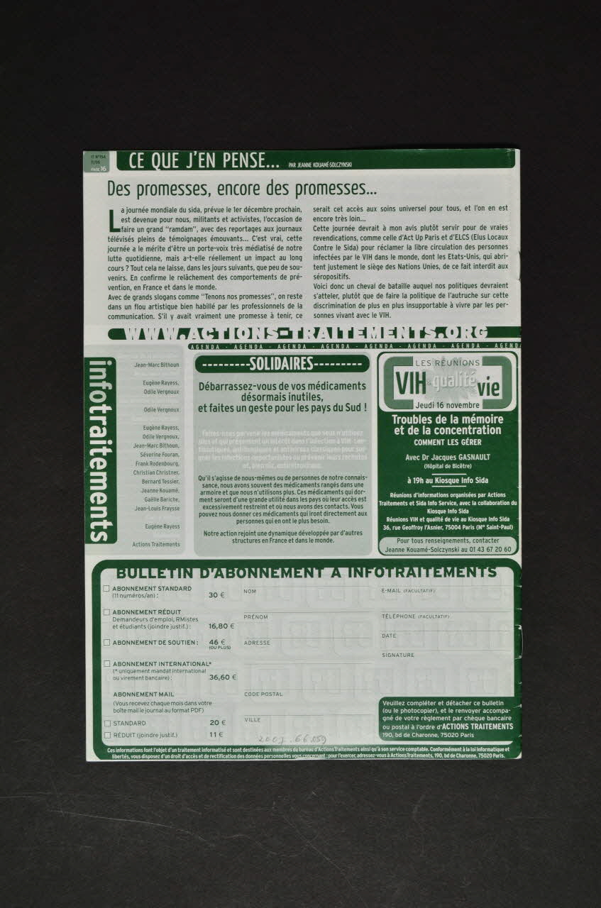 ODILE VERGNOUX // medical@actions-traitements.org, sur la couvertureNom d'association, adresse