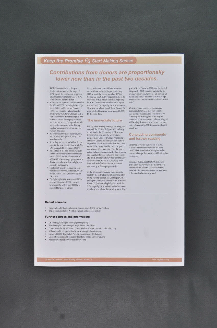 Fichier, "Keep The Promise. Start making sense" (Tenez la promesse. Commencez à lui donner un sens" / n°8 A search for the 0,7 % ODA Holy Grail ? (Official Development Assistance)