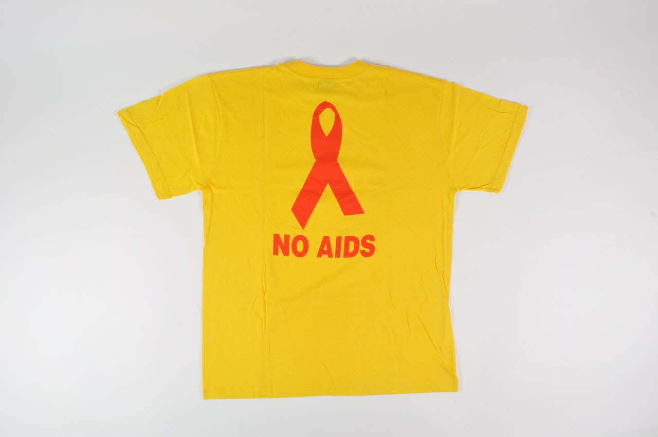 Tee shirt, "No AIDS" (jaune et ruban rouge rouge)