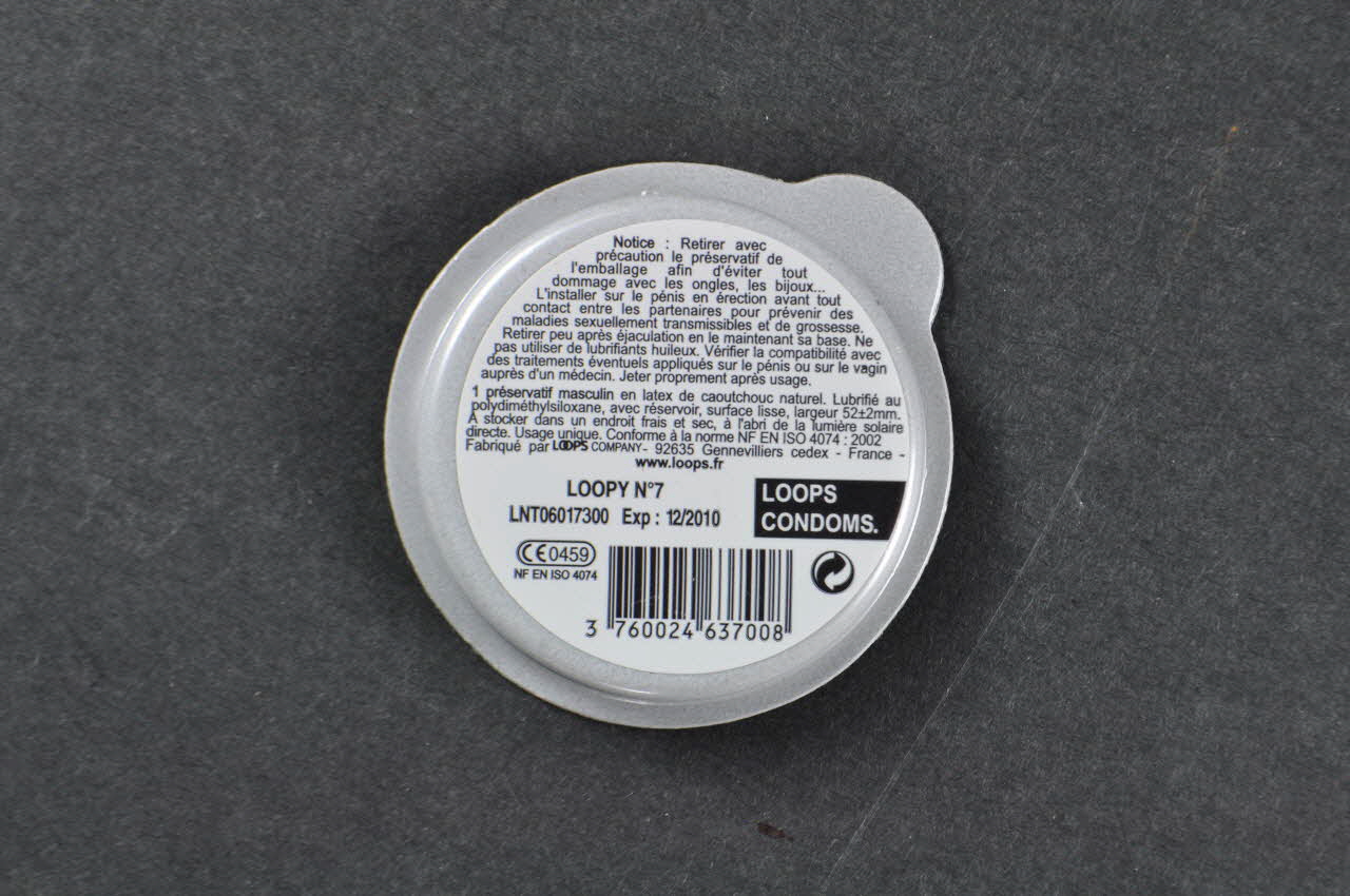 Au dos se trouve le nom de la marque et un mode d'emploi. Un préservatif est rangé à l'intérieur.Décor