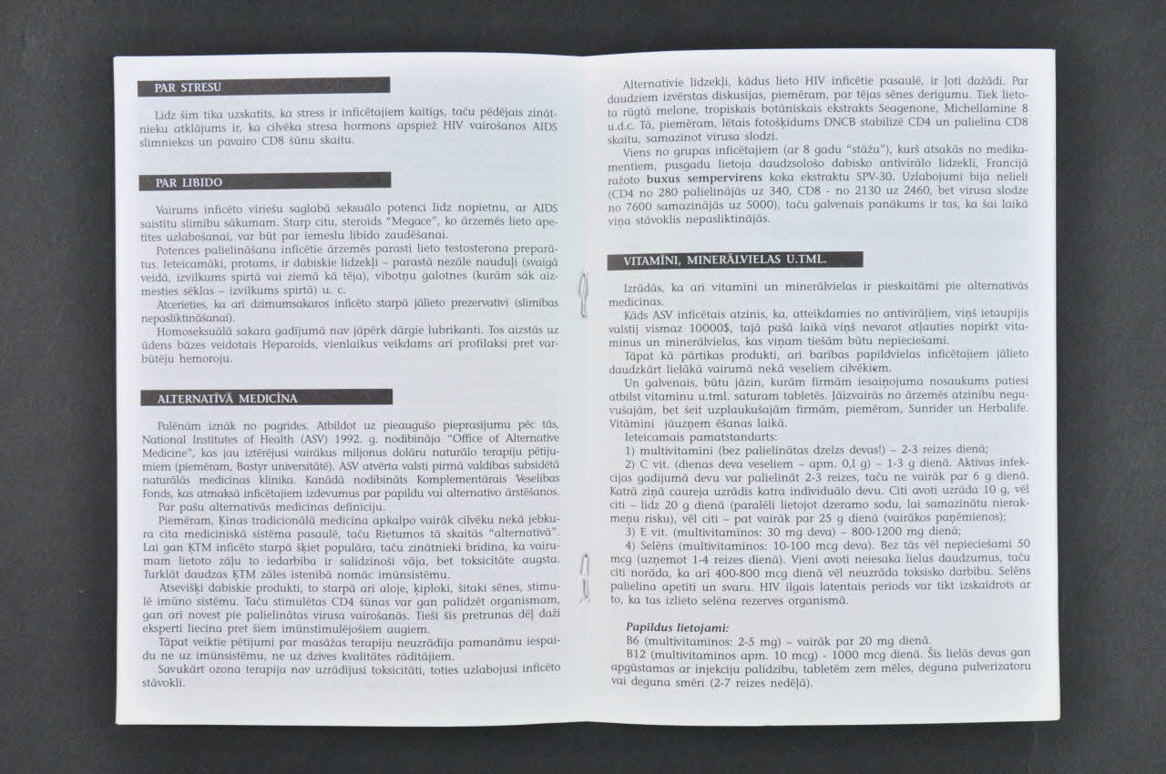 "A.G.I.H.A.S." // (Atbalsta Grupa Inficetajiem ar HIV un AIDS Slimniekiem) (au fil du texte dans des bandeaux noirs), versoGlaxoWellcome, versoSommaire