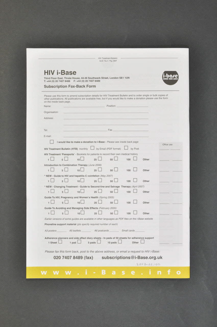 Revue associative, HiV Treatment Bulletin h-tb, volume 8 , n° 5, mai 2007