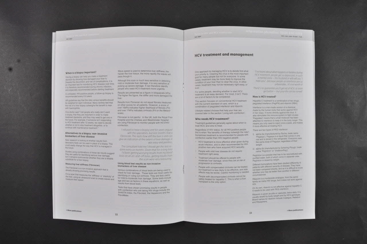 Cette brochure en anglais est publiée par HIV i-Base. Elle est composée de quarante-trois pages imprimées sur du papier mat et reliées entre elles par des agrafes métalliques.