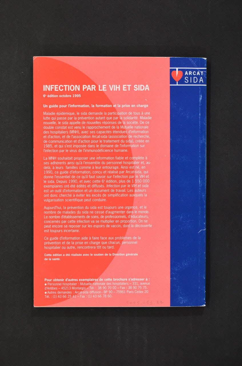 Infection par le VIH et Sida. (Le titre, en caractères blancs et bleus, figure dans la partie centrale de la première de couverture .), sur la couvertureDate