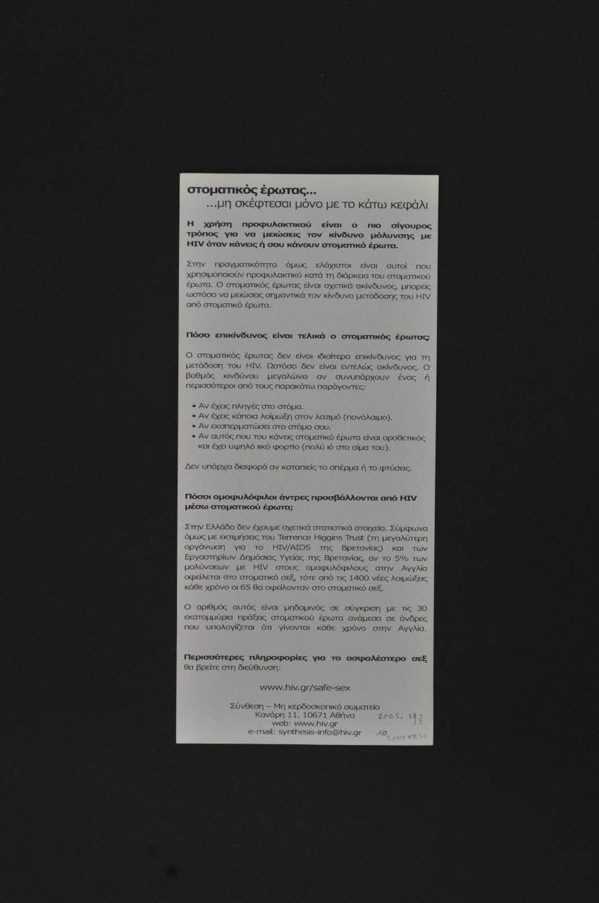 web : www.hiv.gr // e-mail: synthsis-info@hiv.gr (Imprimé dans le bas en noir), versoDécor