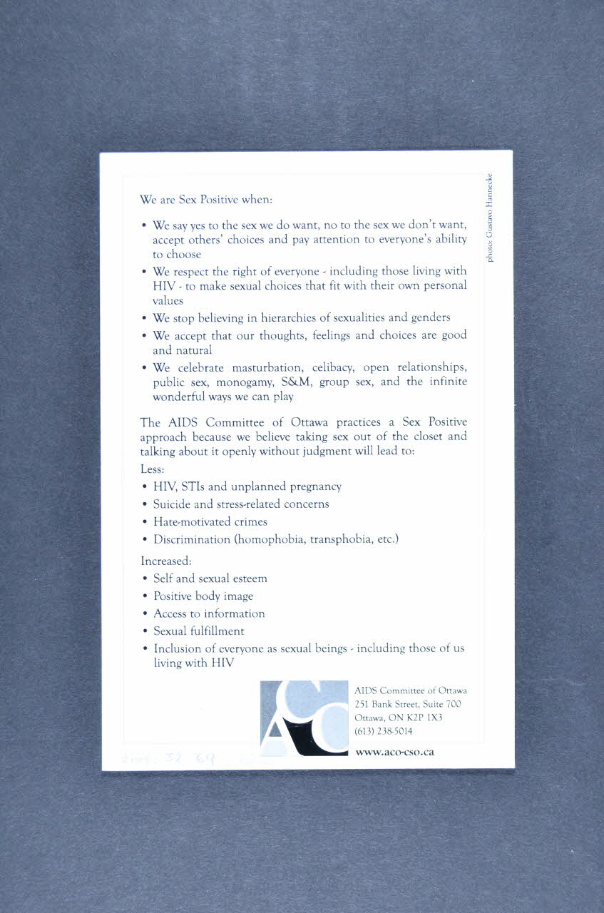 AIDS Committee of Ottawa // 251 Bank Street, Suite 700 // Ottawa, ON K2P 1X3, versoTexte