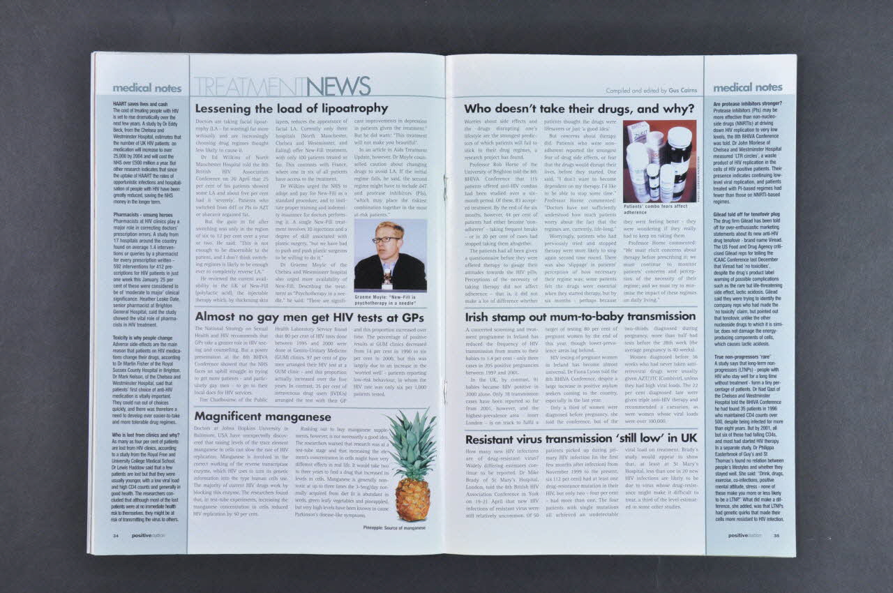 Précisions sur le contenu : - p. 14 Interview de Julie Davids, nouvelle activiste américaine ( titre de couverture) (droits à la santé des américains pauvres) - p. 18 Film sur l'histoire du VIH de Jim Hubbard - p. 22 "Brides and grooms asians undercover" (Jeunes femmes et garçons asiatiques non découverts) (Silences sur le VIH et la sexualité chez les asiatiques vivant en Grande Bretagne) - p. 26 Comparaison des polices d'assurance de voyage - p. 28 Le chaos de la NHS (titre de couverture) : analyse de graves changements dans la politique de santé anglaise - p 32 Le prix Hero Award 2003 Traitements - p. 34 Nouvelles des traitements - p. 36 Compte rendu de la 14ème conférence internationale de Barcelone - p. 40 Défendez votre peau Rubriques régulières Lettres de lecteurs Chouchoutez vous (crèmes solaires) - Témoignages
