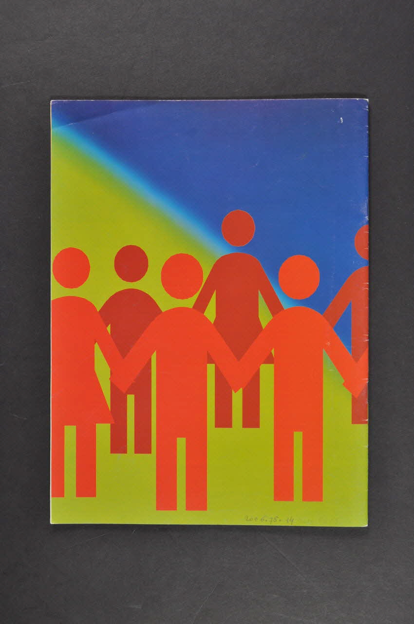 La couverture se compose de six silhouettes rouges, femmes et hommes, se tenant par la main, sur un fond bleu. Le titre en lettres noires et violettes est situé dans la partie supérieure. Il est suivi du sous-titre en blanc séparés par une ligne jaune. Au verso, on retrouve six silhouettes rouges sur un fond vert et bleu. A l'intérieur, le texte en caractères noirs sur des fonds colorés et illustré par de nombreuses photographies couleurs.Inscriptions