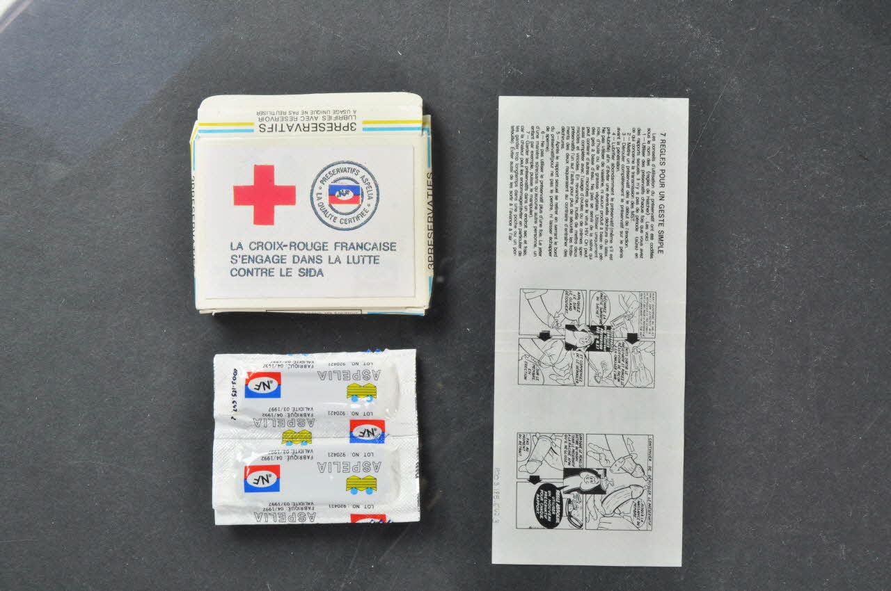Préservatif, Emballage de préservatif, Emballage de préservatif "La Croix-Rouge Française s'engage dans la lutte contre le Sida"