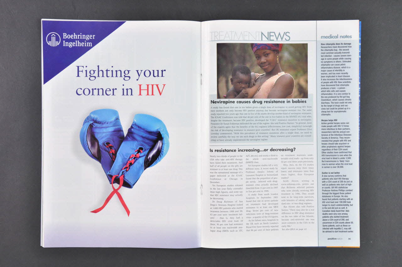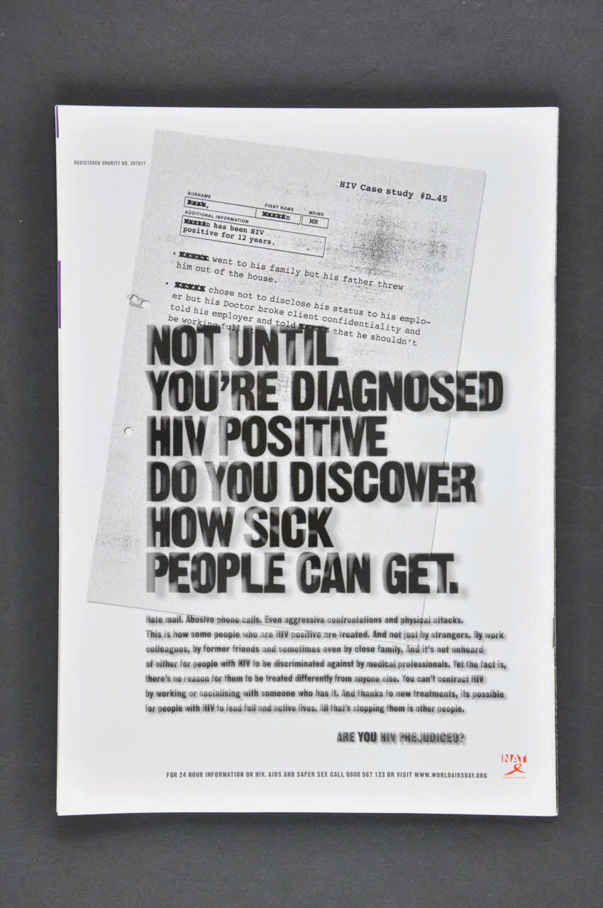 nation // positive (en partie supérieure), sur la couvertureHIV PREJUDICE // special issue // how it affects . Families . Gay men . Africans (En orange,gris et rouge en partie inférieure), sur la couvertureExpert Reference Group // of people living with HIV (Sur la feuille présentant l'association Terrence Higgins Trust, en caractères noirs)Texte