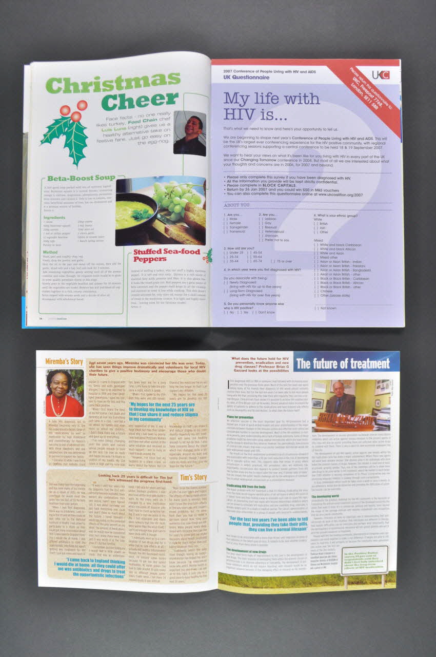 UKC (En bas, à droite, logo de UK Coalition of people living with HIV/Aids), sur la couvertureTitre