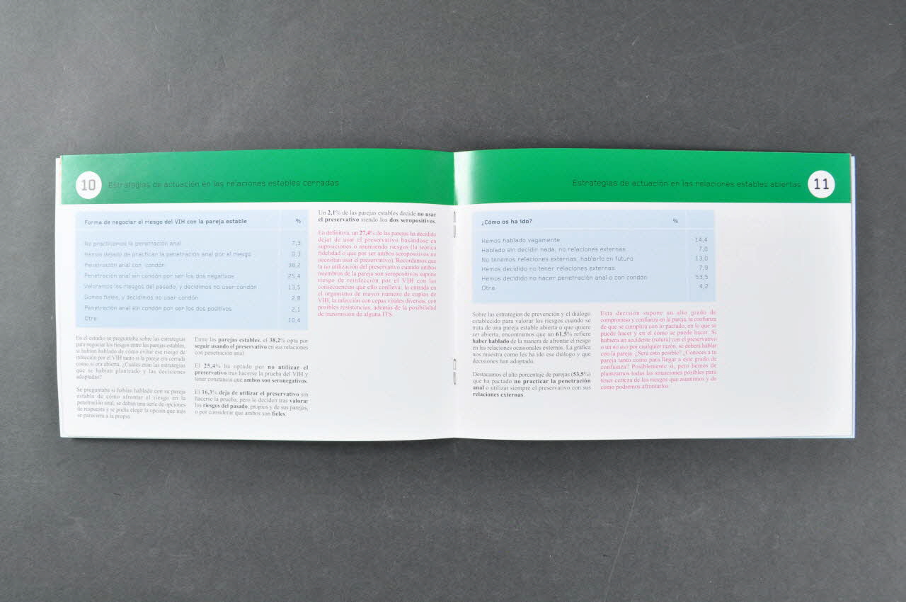Résultat de l'enquête par questionnaire effectuée en 2002. Distribution de 3.342 questionnaires (3 saunas, 2 sex shops, 1 lieu de drague) / 640 réponses / 328 échantillons de salive. - Attitudes sur l'homosexualité et confiance dans les sources d'information sur le sida - Le sexe que nous pratiquons - Communication : négocier les risques - Prévalence et dépistage du VIH (analyse de la prévalence en demandant aux enquêtés s'ils connaissent leur statut sérologique et aussi en analysant les échantillons de salive) - Usage de drogues - Infections sexuellement transmissibles - Connaissances sur les antirétroviraux et la prophylaxie post exposition Brochure destinée à la "communauté homosexuelle"