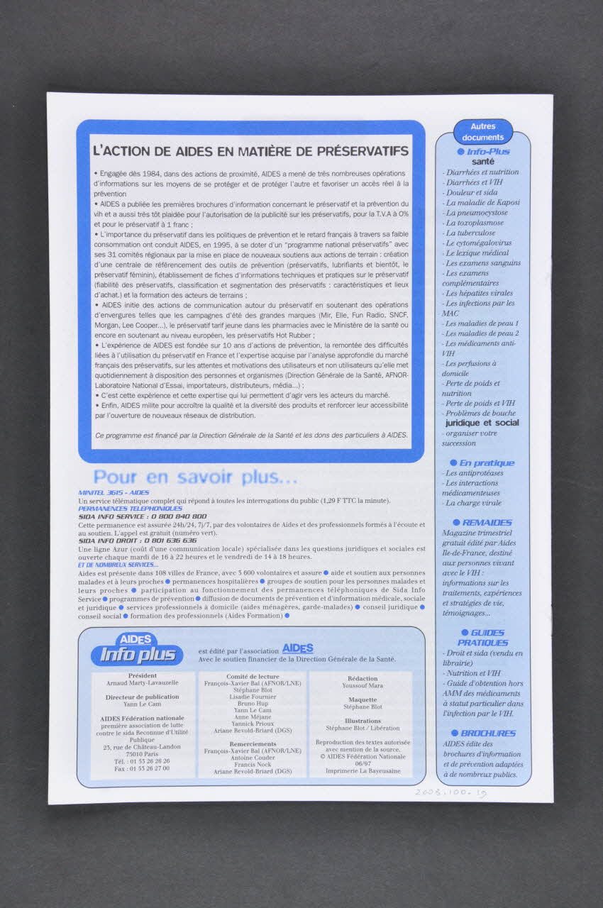 Revue associative, "AIDES Info plus : Les préservatifs (aspects techniques et pratiques)"