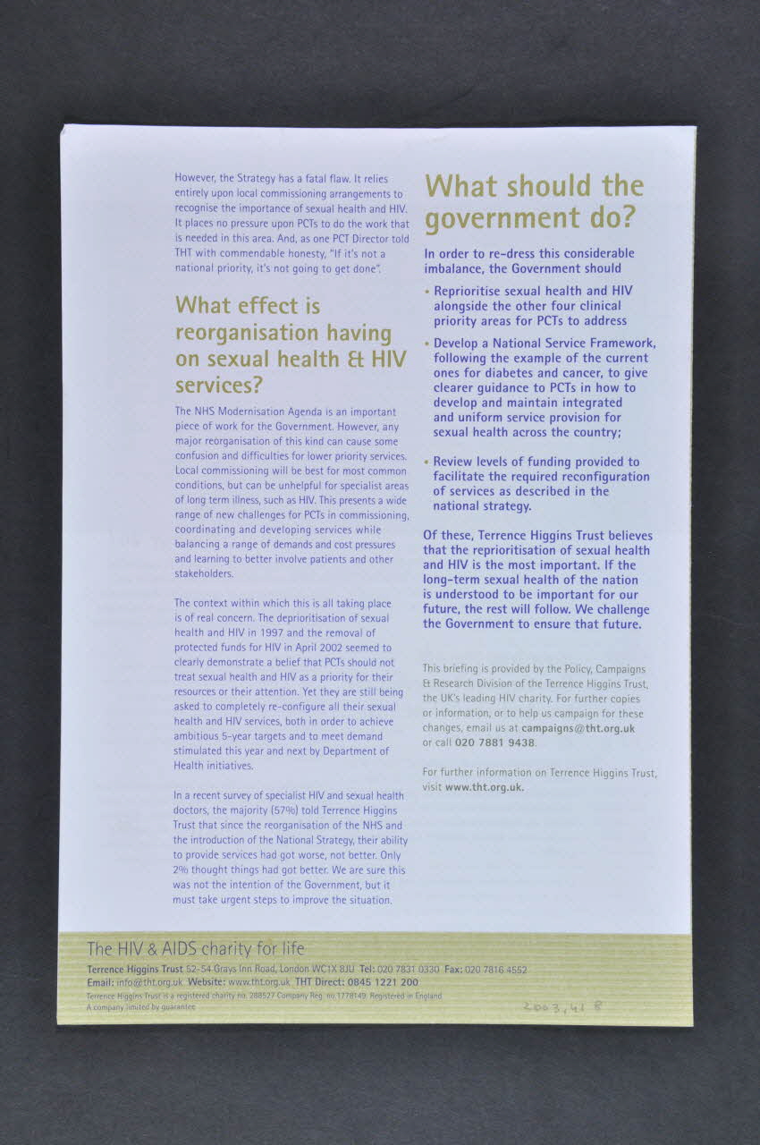 Dépliant, tract, "Why the Government should make sexual health and HIV an NHS priority"