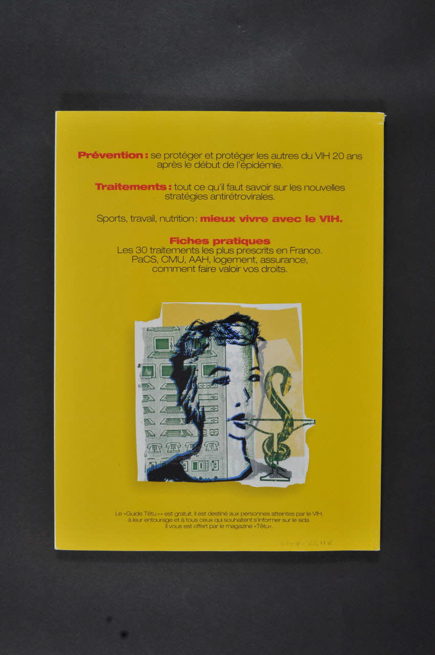 Supplément gratuit de "Têtu" n°51 (Imprimé en noir dans un encadré vert sur la deuxième page de couverture), à l'intérieurPrévention : se protéger et protéger les autres du VIH 20 ans après le début de l'épidémie. // // Traitements : tout ce qu'il faut savoir sur les nouvelles stratégies antirétrovirales. S // // ports, travail, nutrition : mieux vivre avec le VIH. // // Fiches pratiques. // Les 30 traitements les plus prescrits en France. PACS, CMU, AAH, logement, assurance, comment faire valoir vos droits. (Imprimé en rouge et noir sur jaune dans le haut), versoDate