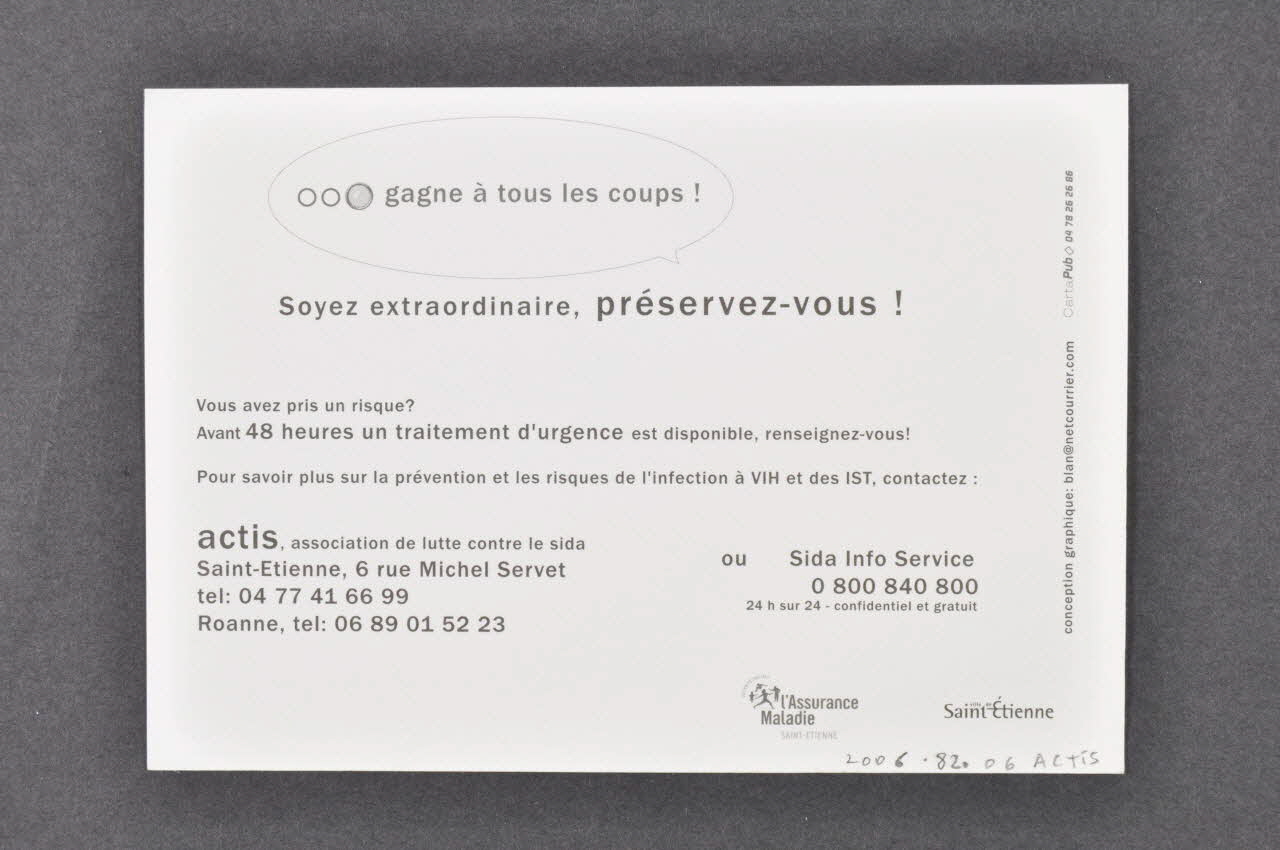 actis, association de lutte contre le sida // Saint-Etienne [...] (en bas à gauche), versoTexte, slogan