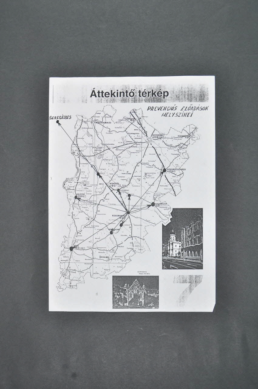 Attekintö térkép // PREVENCIOS ELÖADASOK // LEHYSZINEI (.6), rectoVÉLEMÉNY // Az AIDS-megelözö felvilágoító eloadásról (.4), rectoSignature, titre, auteur, concernant la date